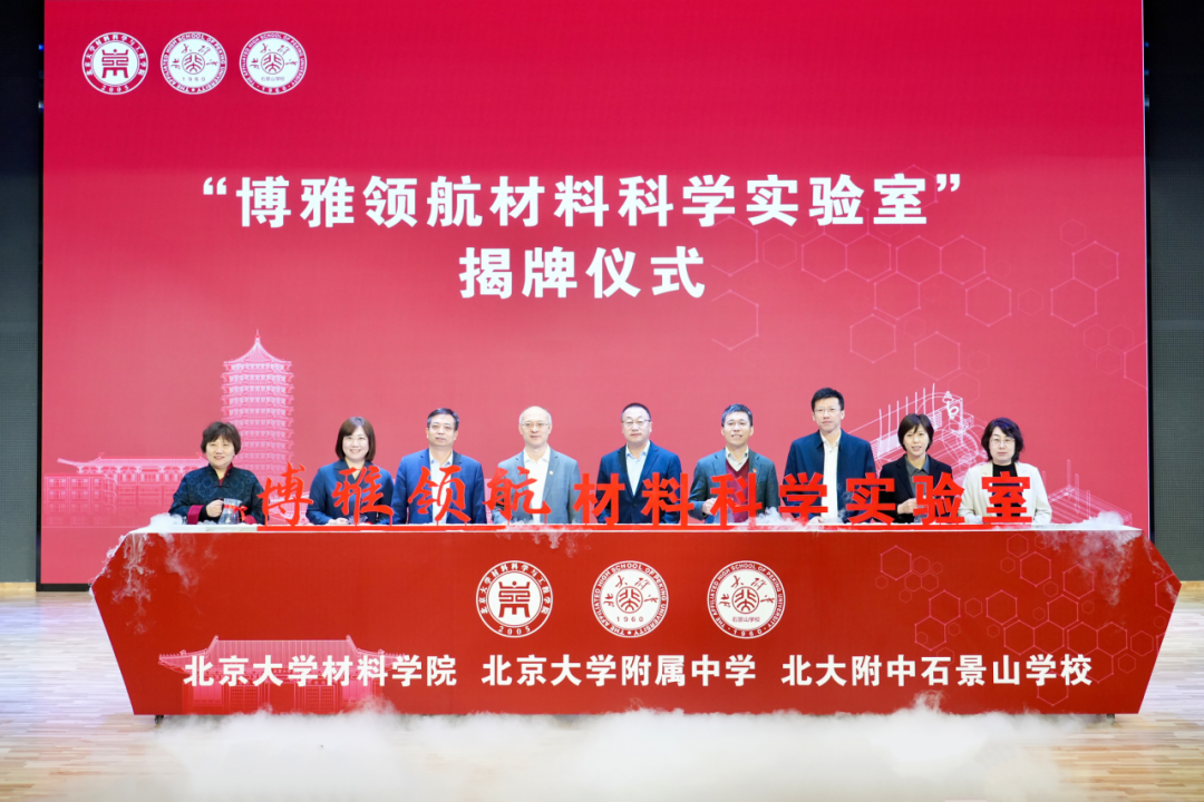 3 月 25 日,北大附中石景山学校新校区隆重举行 “博雅领航材料科学实验室” 签约揭牌仪式,北京大学材料科学与工程学院、北大附中与石景山学校三方携手共建。作为教育部 “国优计划” 培养基地,此次实验室落地是学校深化 “初高中贯通培养(1+3 项目)” 的关键举措,更将丰富贯通培养的实践载体,与 AI 赋能数学教学等特色项目形成育人合力。实验室深度依托北大顶尖科研资源、专家团队与先进设备,打破初高中科创实践壁垒,为学生提供从基础探究到前沿实践的成长通道,锤炼科学思维与创新能力。