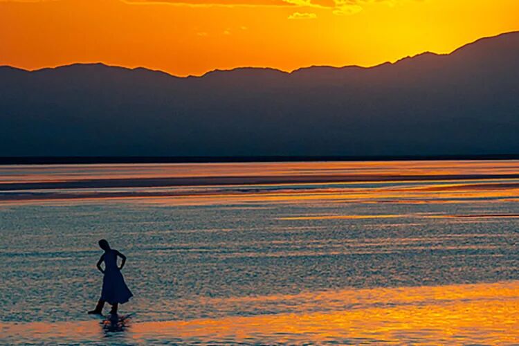 2025年8月10日,茶卡盐湖落日余晖。(视觉中国/图)
