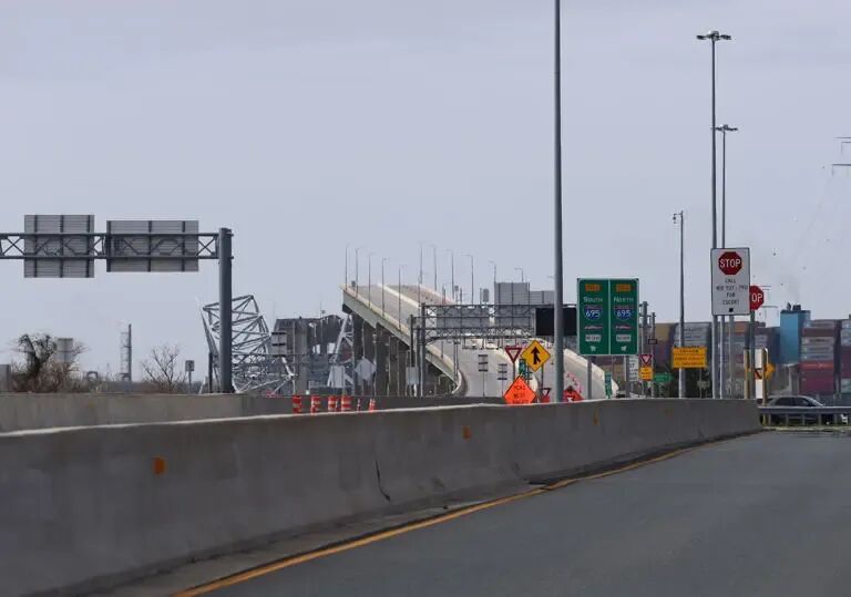 2024年3月,美国马里兰州巴尔的摩坍塌的大桥 / 图源:新华社