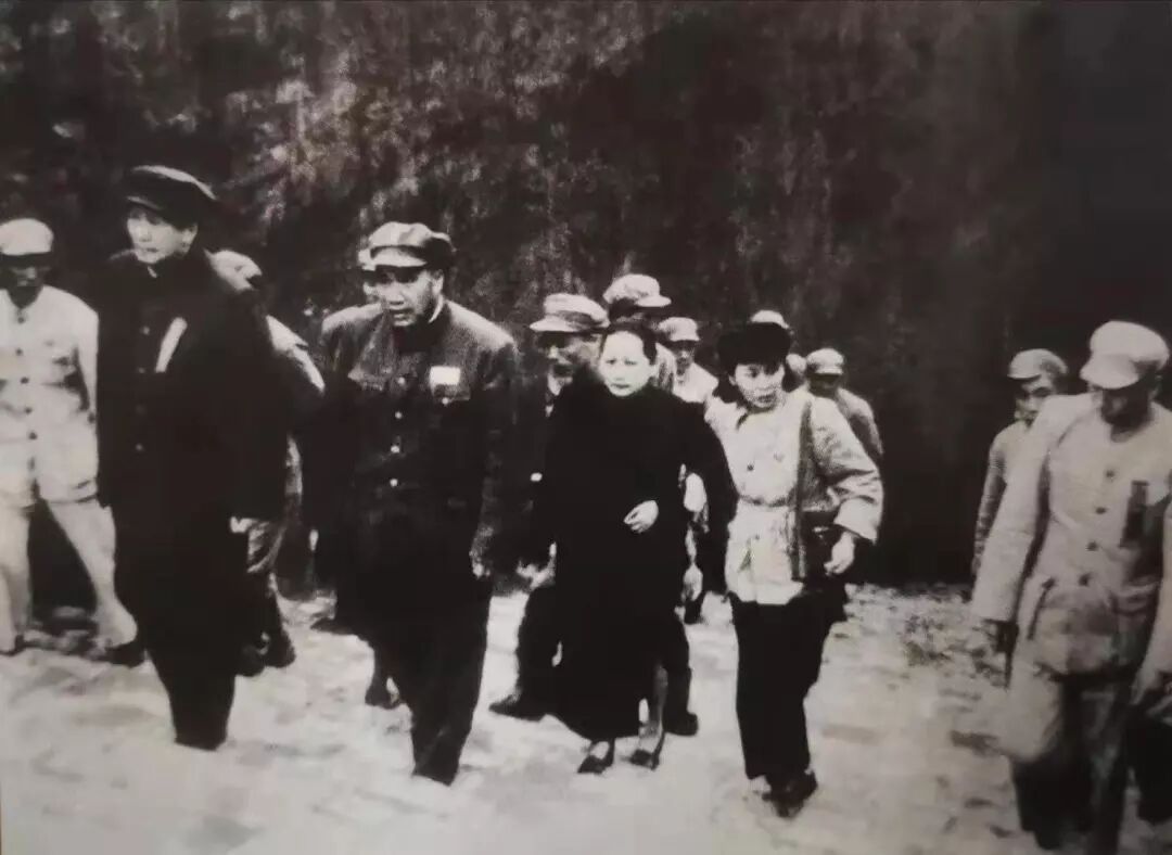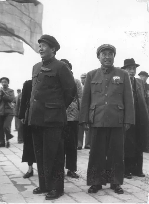 毛泽东同志等领导人登天安门城楼时的照片