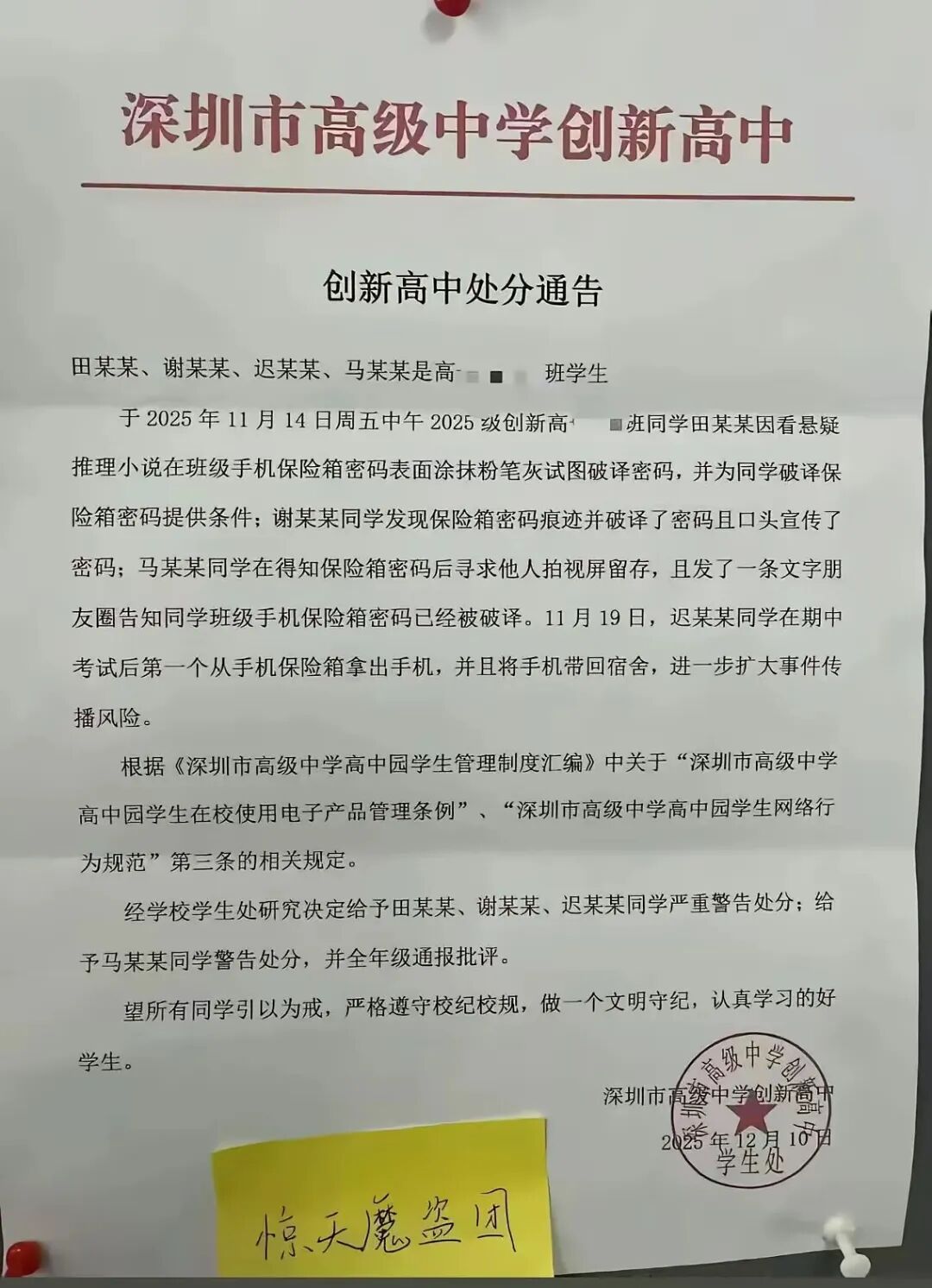 深圳市高级中学创新高中近期因对“破译手机保险箱密码”的学生处分一事引发热议。有不少网友们质疑:一所用“创新”命名的学校,怎么会处分学生的“创新行为”呢?