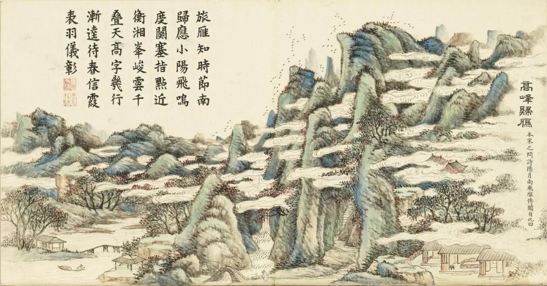高峰歸雁(本宋之問詩。陽月南飛雁。傳聞自此回)