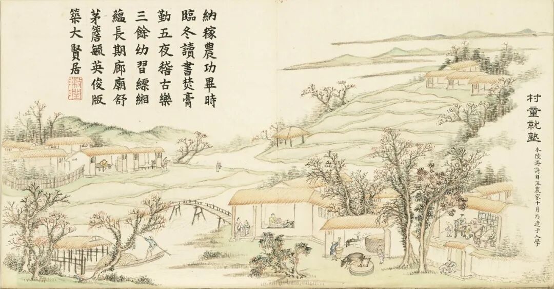 村童就塾(本陸游詩。自注農家十月乃遣子入學)