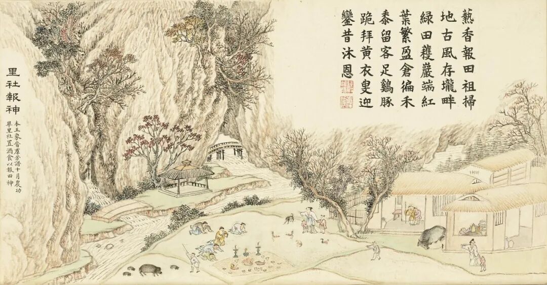 里社報神(本王象晉群芳譜。十月農功畢。里社置酒食以報田神)