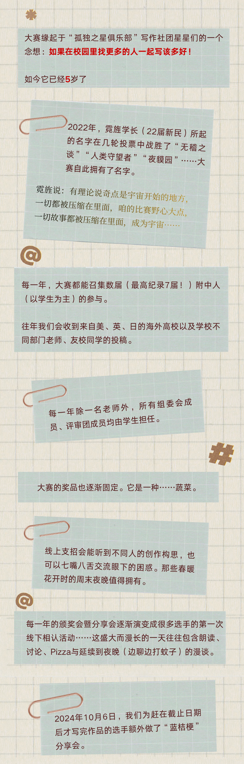 1. 大赛不设语种限制。如果你使用中文以外的语言写作,请提前告知我们。